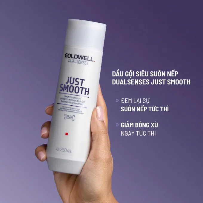 Dầu gội Goldwell Just Smooth Taming siêu mượt là một sản phẩm làm sạch nhẹ nhàng có công thức làm mượt và kiểm soát tóc dành cho mái tóc bông xù khó bảo.